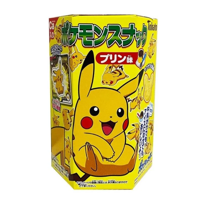 Pikachu shaped crunchy flan puffs Included wrapped premium Pokémon Sticker!